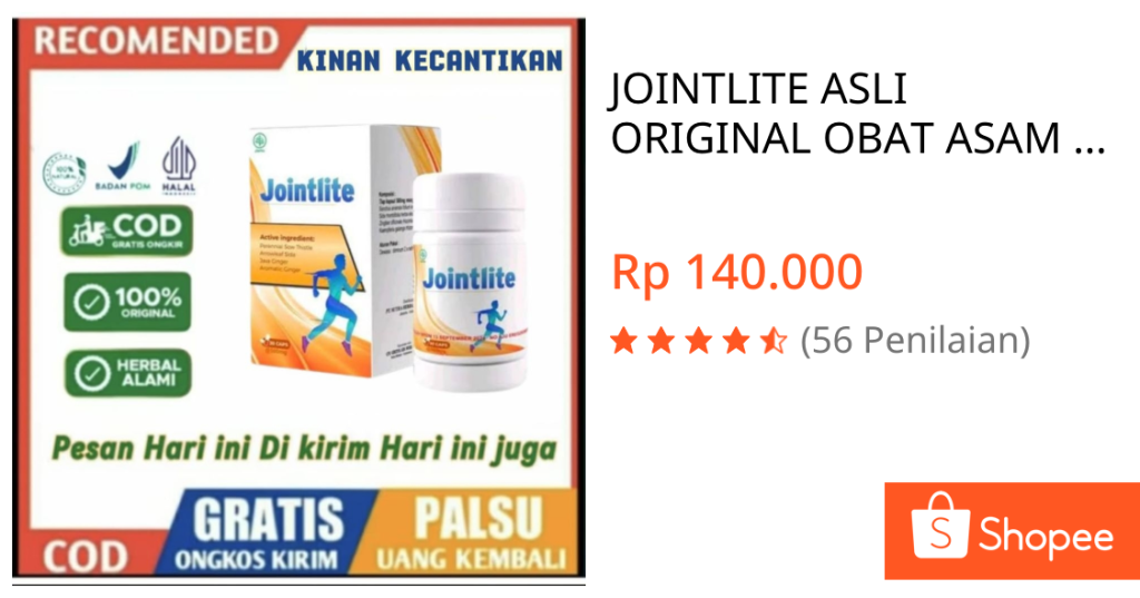 Temukan JOINTLITE ASLI ORIGINAL OBAT ASAM URAT REMATIK SENDI SYARAF KEJEPIT AMPUH KHASIATNYA dengan potongan 26%! Hanya Rp130.000. Dapatkan segera di Shopee!