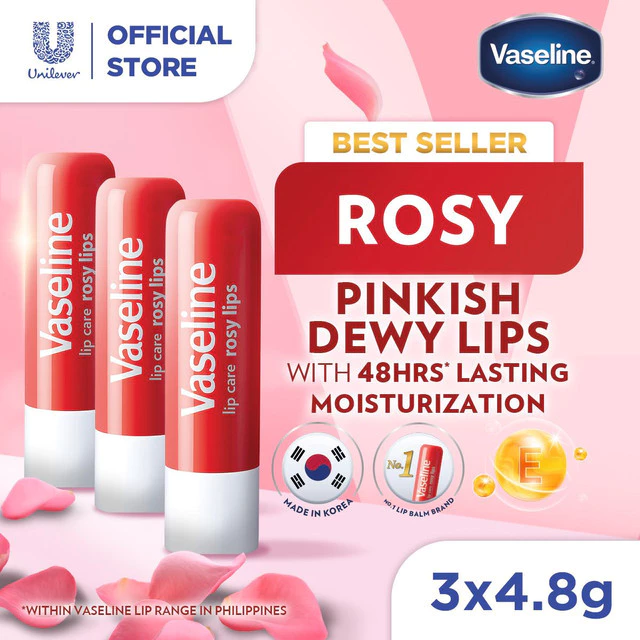 [TRIPLEPACK] Vaseline Lip Therapy Balm Stick Rosy Lips 4.8gr – Pelembab Bibir – Lip Balm